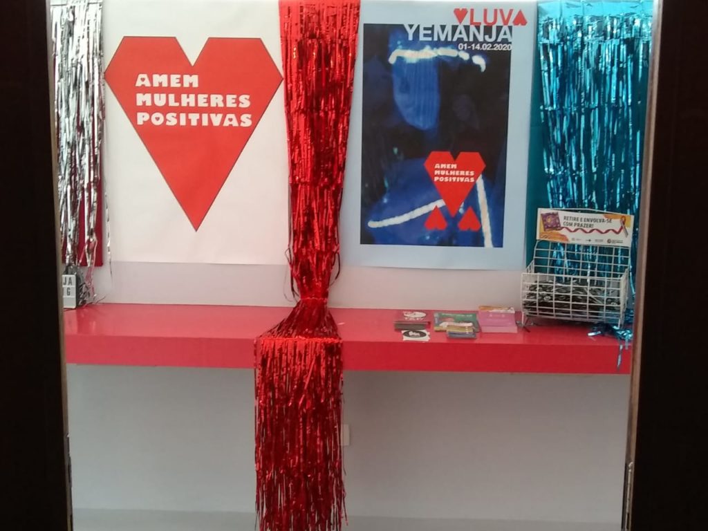 [*Working together with the City of São Paulo office of Human Rights, George Ferraz prepared (styled) two downtown cultural spaces for Love Positive Women 2020 with the theme of Yemanjá and using the posters designed by Thiago. A message from the Office of Human Rights was distributed along with Valentines Day cards. The Human Rights flier encourages HIV+ women to use the city’s three citizenship centers for meetings any time of the year, and provides a QR Code to find more info easily. Both Tapera Taperá bar and esponja spaces in São Paulo hosted Love Positive Women-related info / set-ups. Thiago made the candles for an event in NYC held on February 9th. George helped with the event too, making some more cloth hearts, like the ones distributed in São Paulo and Khartoum. There were extra hearts and we mailed them to Puerto Rico with Valentines cards. Some also went to the cast of I, OF COURSE, WAS LIVID, a Love Positive Women-affiliated event at Housing Works bookstore. And, about 15 leftover candles go on to the VisualAIDS Women’s Empowerment Art Therapy Workshops. Thanks guys! xo, Todd]