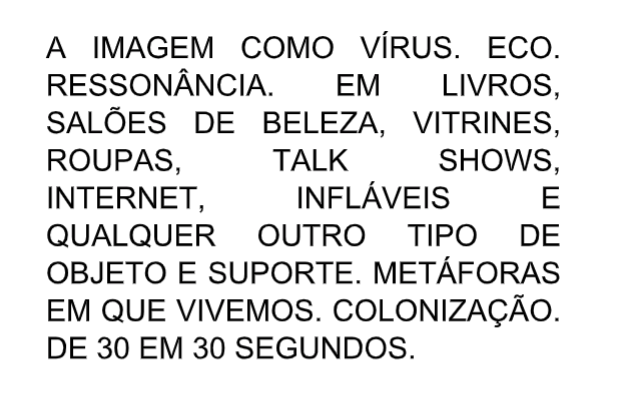 Métodos cada vez mais refinados e eficientes de desumanização e alienação fez o “Capitalismo Viral” se tornar irreversível. O corpo como commodity vem do aperfeiçoamento desse capitalismo em saber manejar uma espécie de imaterialidade, ou seja, produzindo paranoia, criando uma nova/outra relação de produção e consumo. Sendo assim, o “Capitalismo Viral” - se o relacionarmos à lógica do HIV funcionaria assim: Existe uma cooptação da “doença”, criando assim sistemas de manutenção desse “novo produto”. Manter uma espécie de “falsa panaceia” é interessante para continuar com a “lei da oferta e da procura”. Na verdade se formos pensar vários outros estratagemas da vida contemporânea funcionam desta maneira, todos atravessando o corpo.