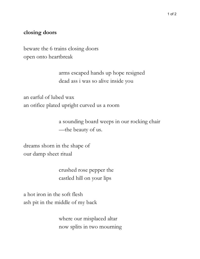 closing doorsBrad Walrond on January 17, 2020Category: da-boogie-down-a-suite-of-poems, launch-pad, textsPrevious: Field of Action: curatorial interview b/w Kathleen Bitetti & Todd Lester (MAP Catalog 2013)Next: Please, touch me (PT/EN)