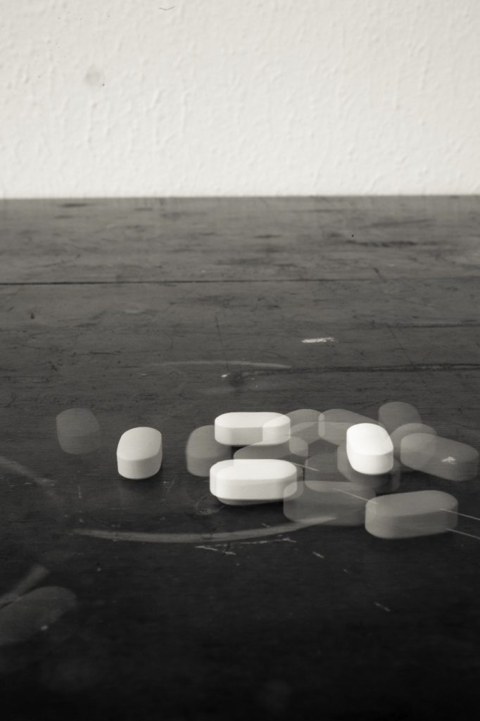 Consegui uma assistente lá do Cairo pra me auxiliar na produção, todos os frascos e rótulos foram produção local. Os frascos foram até que fáceis de achar, já os rótulos tivemos que andar por pelo menos 4 gráficas que não queriam imprimir por conter as palavras “gay” “HIV” e “AIDS” no conteúdo. Todas palavras proibidas até de mencionar naquele país. A assistente teve que falar que era pra um trabalho de faculdade. O corte dos rótulos vieram cheios de risadas e reprovações dos caras que cortavam e a performance foi um sucesso. Mesmo que ainda sem muito formato por ser a primeira, ela foi censurada, não pude ficar sem camiseta e tinham policiais filmando todos os movimentos da abertura da bienal. Ela estava toda em inglês então acho que as chances de ser mais censurada diminuíram. Nunca antes tinha me visto sendo observado por tanta gente, lembro até de uma criança me oferecendo coisas pra beber e me ajudando a tirar os rótulos, foi forte! Durou 3 horas, quase que a abertura toda e eu sentia que quem entendia tinha uma mistura de dó com compaixão. No fim, alguns homens vieram me abraçar e agradecer por aquele movimento. Suponho que eles eram positivos. Eu não me envolvi com as causas do país, não deu tempo, tentamos um contato com a UNAIDS de lá mas não teve sucesso. Mas pra mim, enquanto proponente, estar ali levando aquelas palavras que não podem nem ser faladas impressas em 740 frascos de remédios, já me fez ter sentido.