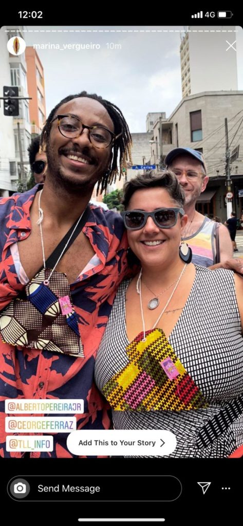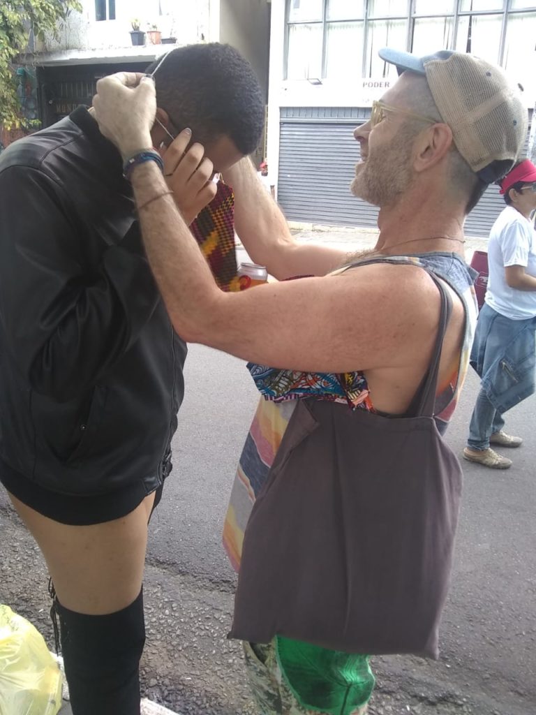 Later that night I went to Largo do Arouche to the regular Sunday night gathering of Arouchianos and handed out a few more hearts left in pocket from earlier in the day. I wanted to especially thank Arouchianos for their work in the Center. It makes a lot of sense to me. I think we may do something special next year during the Love Positive Women holidays (Feb 1-14, 2020). The LUV heart is now added to their bundle of flags and banners that crown the small tent where a generator and mic stand sit during the lively nights when they hold court at Largo do Arouche.