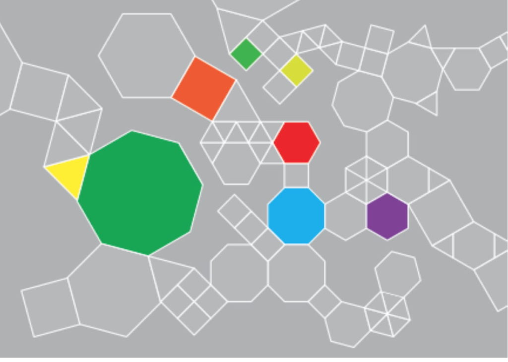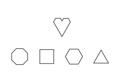 The game is modeled after Exquisite Corpse. There are five shapes, including a signature heart. Four of the shapes are varied in size (large and small), design and color when feasible. The black-and-white game is meant to be played with very little overhead. The geometric shapes of the tiles as well as the graphic designs of the tiles allow for almost infinite configurations.